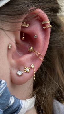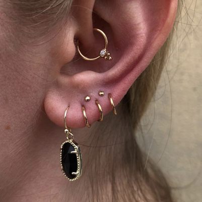 Ear Project By Ruth Wustenberg At Diablo Rojo Austin Tx Www Diablobodyjewelry Com Earings Piercings Initial Earrings Cute Ear Piercings